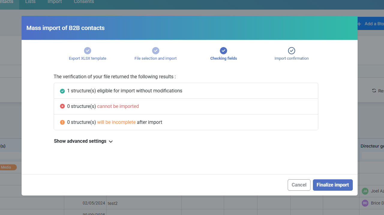 Your BtoB contacts are then imported.