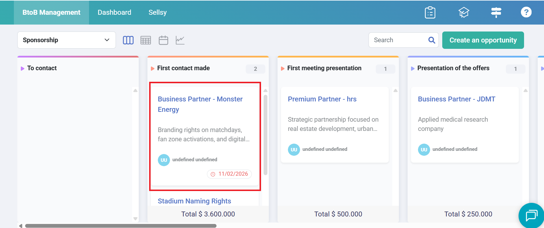 To view, create, or edit notes linked to an opportunity, click on the opportunity: