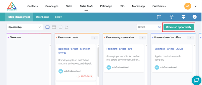 To create a new opportunity, click on the Create an opportunity button at the top right.