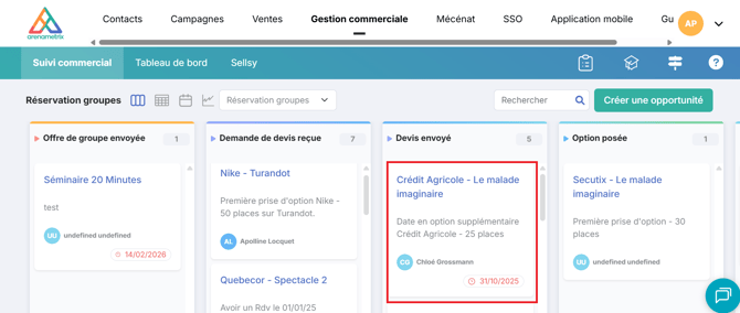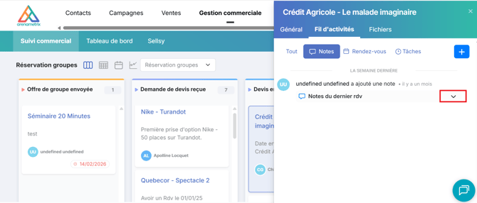 Pour visualiser les notes associées à une opportunité, les créer ou les modifier, cliquez sur l’opportunité :