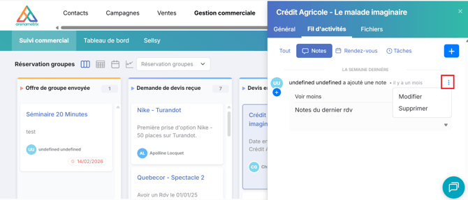 Pour modifier ou supprimer la note, cliquez sur les … en haut à droite puis choisissez Modifier ou Supprimer. Une fois les modifications effectuées, n’oubliez pas de cliquer sur Enregistrer.