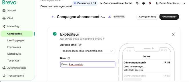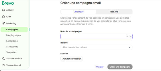 Créer une nouvelle campagne email dans Brevo