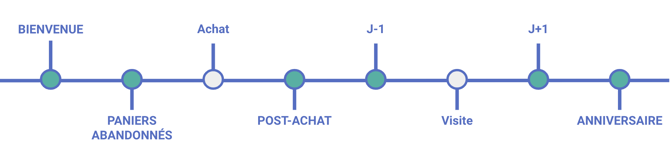 Ainsi, plusieurs scénarios peuvent être déployés tout au long du parcours de vos clients: